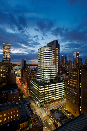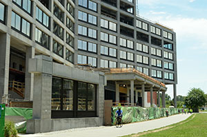 Hudson Commons/441 Ninth Avenue, New York, United States. The Hudson Commons project in New York, NY, is a clear demonstration of “thinking outside of the box.” In addition to modernizing an eight-story building that had originally served as a warehouse, the team of Cove Property Group, Kohn Pedersen Fox, and Pavarini McGovern added 17 stories, creating a modern “Class A” commercial office building with abundant lighting, high ceilings, outdoor terrace spaces, and other amenities that appeal to today’s tenants. Following a full interior demolition of the original building, Pavarini McGovern opened floor slabs to install a new structural core, and the team reinforced the existing foundations and columns to support the tower. The new design brightens the existing building significantly, with glass panels on the first floor and expanded windows throughout. The addition includes an all-glass façade and expansive ceiling heights to ensure tenants get plenty of natural light.