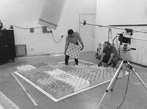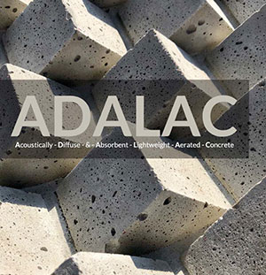 Acoustically Diffuse and Absorbent Lightweight Aerated Concrete, Oklahoma, USA. The acoustical character of an occupied space is defined by built environments that reflect, diffuse, and absorb frequencies. Placement and articulation of surfaces directly relate to how desired sounds and unwanted noises reach and impact occupants. This project showcases research and development of fabricated prototypical concrete panels by manipulating ingredients and form, yielding acoustical properties conducive to speech frequencies. Developed through spatial analysis, software validation, laboratory tests, material science, and prototypical fabrications, the research supports the potential for functional, sustainable, resilient, and productive space interwoven with and codependent upon acoustics.
