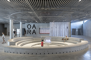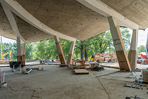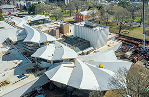 Arkansas Museum of Fine Arts, Arkansas, USA. The Arkansas Museum of Fine Arts underwent a $142 million renovation. Construction started in October 2019, concrete work was completed in October 2020, and the new facility is scheduled to open in the fall of 2022. The 133,000 ft² (12,400 m²) space blends elements of the original 1937 Art Deco structure, which will serve as an entrance to the museum with stunning contemporary design. Its signature roof is a flowing, folded-plate concrete structure. Below the roof is a custom curtainwall system that allows for breathtaking views of MacArthur Park. The interior includes a new gallery, administrative and education spaces, a restaurant, retail space, and new entrances.