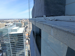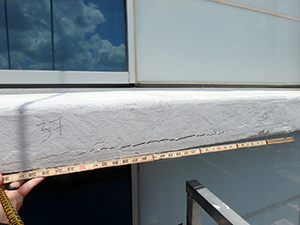 The Austonian | Exposed Slab Edge Repairs, Texas, USA. Less than 6 years after construction of the 59-story building, a large piece from a slab edge fell more than 200 ft (60 m) onto the podium. A visual survey of the exposed slab edges identified 31 locations with signs of severe cracking and distress, and a forensic investigation determined that the cause of the concrete damage was carbonation-induced corrosion due to improper placement of slab reinforcement during construction. The contractor used 12 swing stages to access the exposed slab edges, sometimes at elevations exceeding 600 ft (183 m). The demolition and surface preparation equipment used were specifically selected to mitigate damage to existing post-tensioned assemblies. The prepackaged concrete repair material was mixed at balconies near the placement locations to avoid transportation delays. The repairs also included a four-step quality control program.