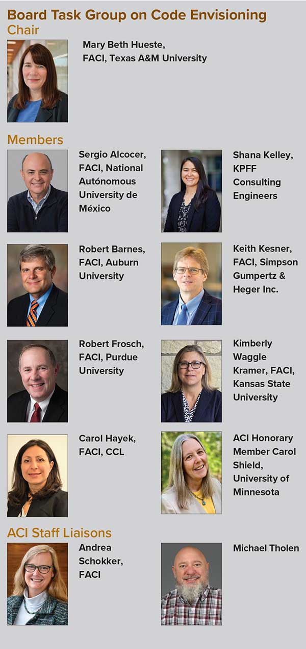 To support the continued evolution of the ACI Suite of Codes, the ACI Board of Direction, under the leadership of President Maria Juenger, recently appointed a Board Task Group on Envisioning Streamlined and Coordinated Concrete Code Development. The Task Group’s mission is to “Develop a long-term strategic vision for the coordination and streamlining of concrete codes to facilitate use and innovation in an increasingly complex concrete industry.” Key to this effort is focusing on user needs to ensure codes are coordinated, streamlined, and easy to navigate, while continuing to promote innovation and standards that meet present needs and anticipate future needs.